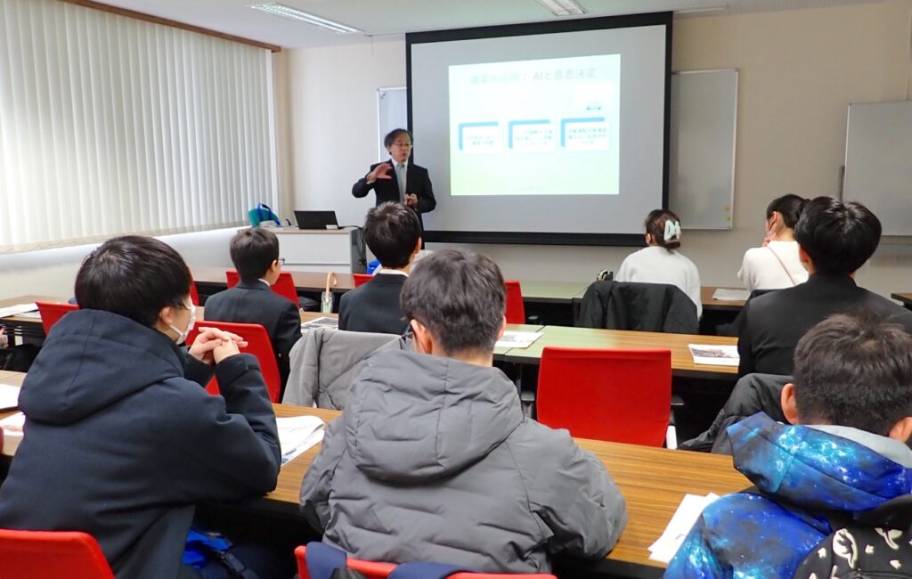 令和7年12月26日(金)、秋田大学附属図書館ほかを会場に、主に中学生を対象とした「数学・データサイエンス体験教室」と保護者・中高教員を対象とした「理系進路講演会」を開催しました。当日は、生徒16名、保護者9名にご参加いただき、盛況のうちに終了しました。